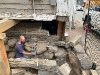 • Reconstruction of west section of southern stone foundation wall. East Coast Masonry (pictured above).
